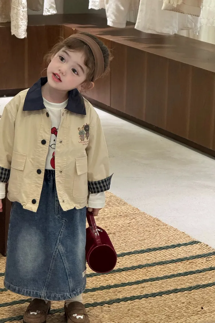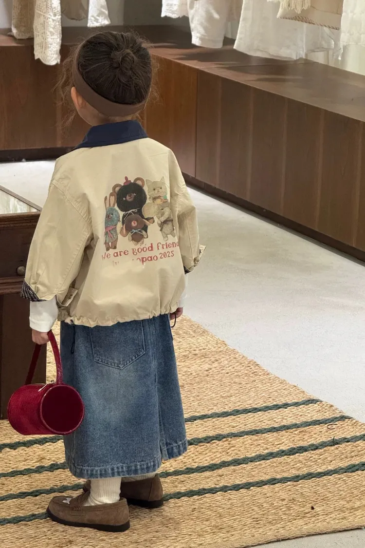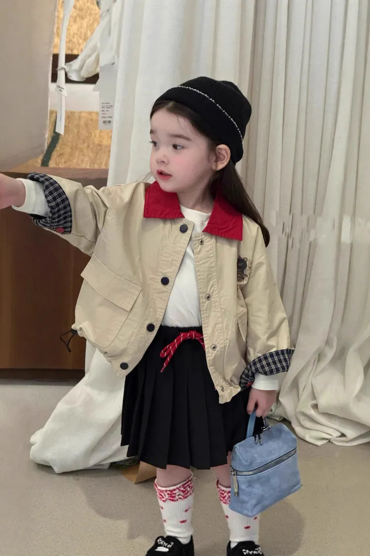 G0902英倫風動物森林配色翻領風衣外套(藍/紅)